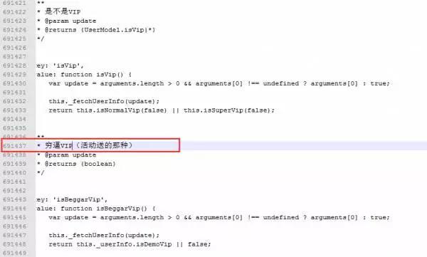此外,在其他的代码注释里,程序员还标明了“乞丐vip”和“beggar vip”。