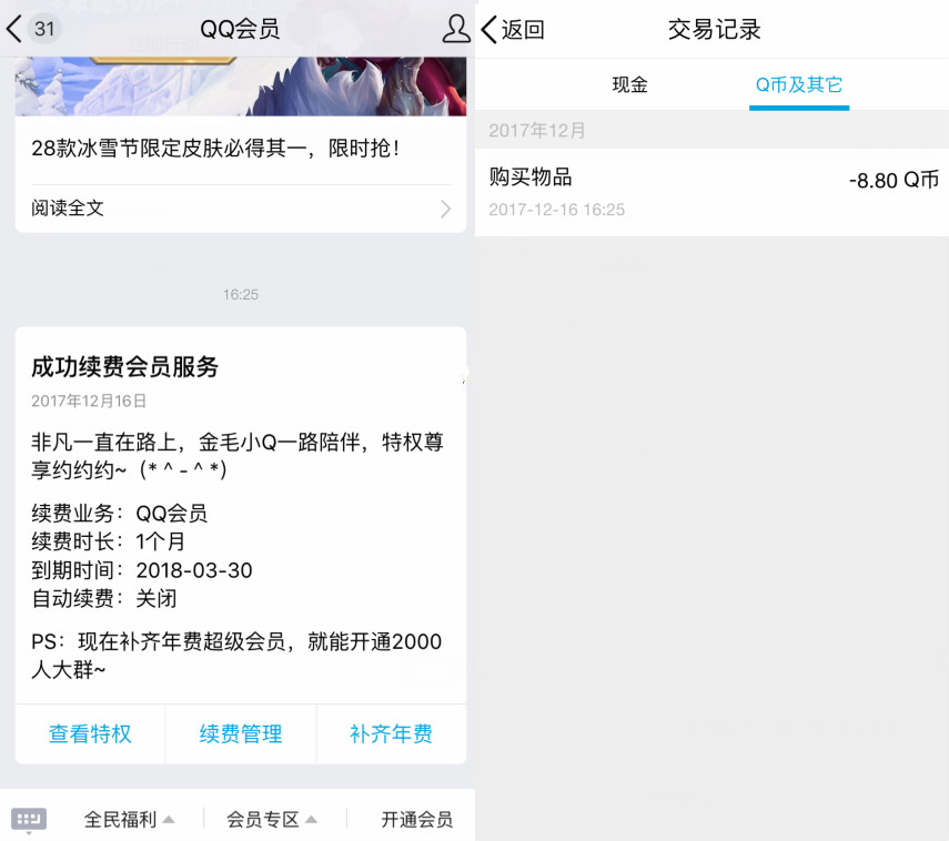 方法①使用QQ钱包积分8.8Q币开通1个月,1天可以3次,累计1年就为年费